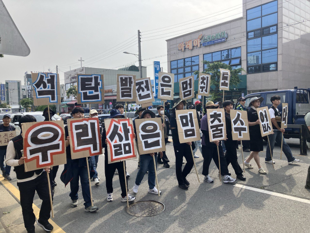▲ 2025년 5월 31일 충남 태안에서 열린 정의로운 전환을 위한 531 대행진에서 석탄화력발전소 노동자들이 피켓을 들고 행진하고 있다. ⓒ프레시안(손가영)