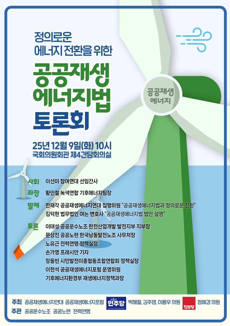 [토론회] 정의로운 에너지 전환을 위한 공공재생에너지법 토론회