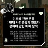 인프라 전환 운동: 현대 사회운동의 인프라 정치에 관한 예비 탐색 〇 일시: 2026년 1월 12일(월) 오후 5시〇 장소: 온라인 (신청자에 한해서 줌 링크 전송)〇 주최: 서울...