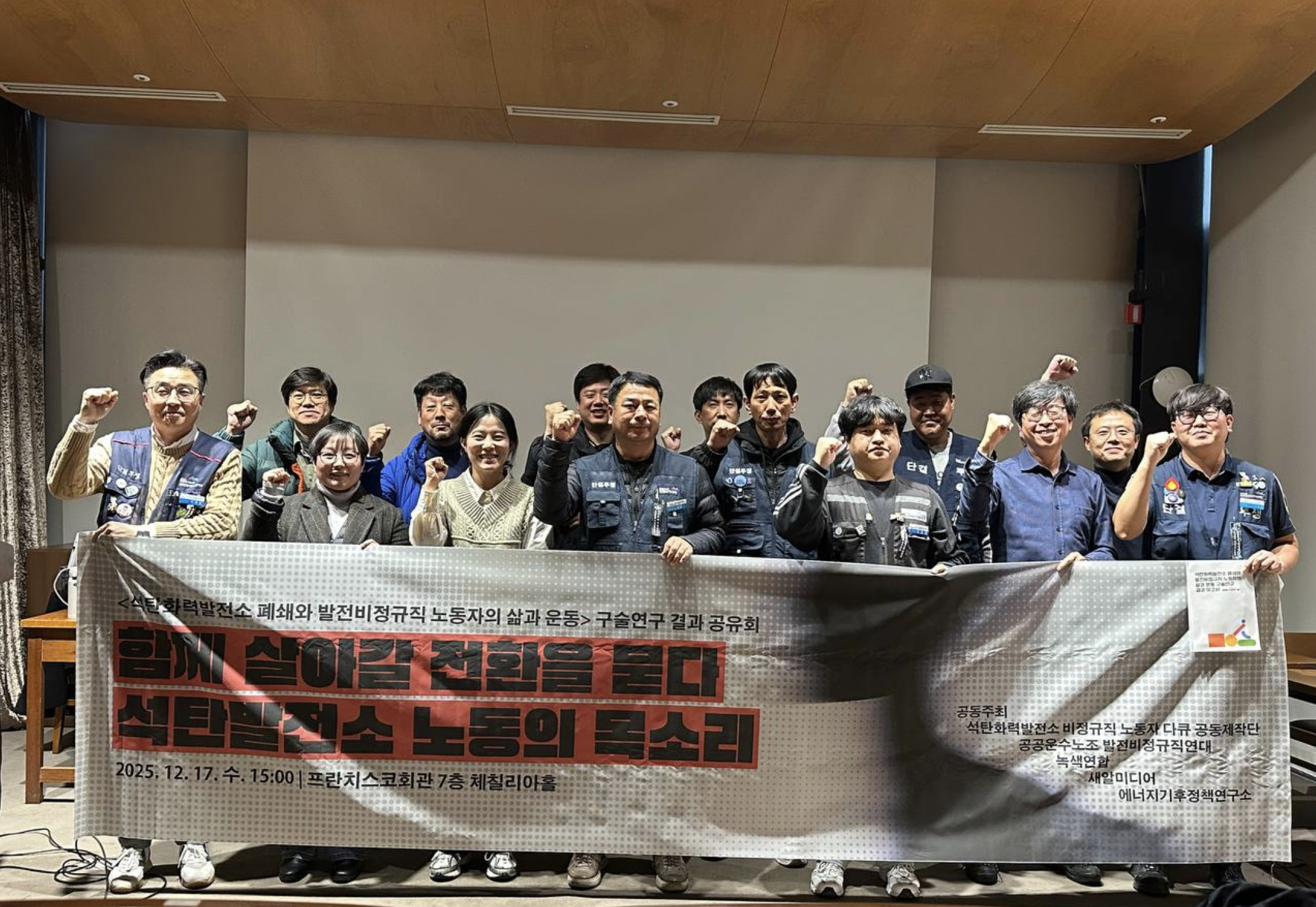 지난 12월 17일, 프란치스코회관에서 「석탄화력발전소 폐쇄와 발전비정규직 노동자의 삶과 운동」 구술연구 결과 공유회를 열었습니다.